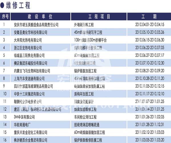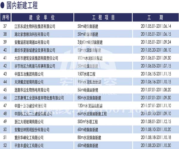 - 煙囪新建宏順建設(shè)工程有限公司是一家專業(yè)從事煙囪新建,煙囪防腐,煙囪內(nèi)壁防腐,煙囪脫硫防腐,磚煙囪新建,水泥煙囪新建,鋼煙囪新建,水泥煙囪防腐,混凝土煙囪新建,煙囪拆除,煙囪維修,煙囪脫硫防腐等工程!咨詢熱線:13770071688。